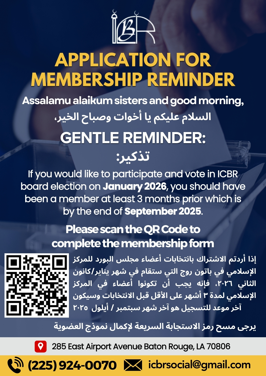 As we seek a better life, for ourselves and our children, through a real and proactive pursuit of quality education, full implementation of political rights and freedoms, social improvement and empowerment, and economic independence, we shall and must not neglect our acts of worship.
